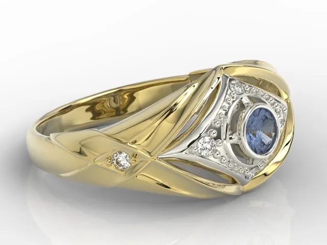 Pierścionek z żółtego i białego złota z szafirem i brylantami AP-9908ZB