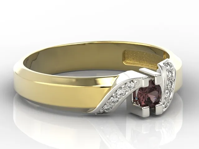 Pierścionek z żółtego i białego złota z granatem i diamentami JP-66ZB