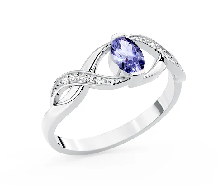 Pierścionek z białego złota z tanzanitem i brylantami AP-69B