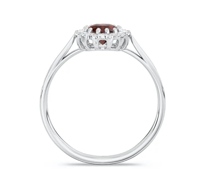 Pierścionek markiza z białego złota z granatem i diamentami 0,21 ct wzór BP-12B