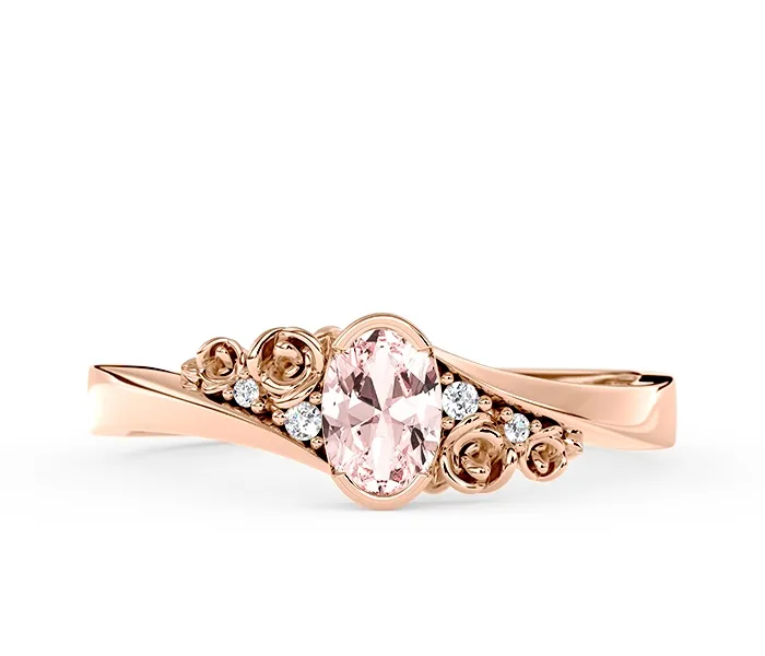 Pierścionek z różowego złota AP-39P z morganitem i diamentami 0,03 ct