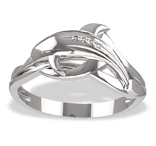 Uniwersalny symbol mądrości i miłości w niecodziennym, biżuteryjnym wydaniu. Złota obrączka przyjmuje w kluczowym punkcie kształt uroczego delfina. Pierścionek z żółtego kruszcu o próbie 0,585 ozdabiają cztery diamenty o łącznej masie 0,02 c