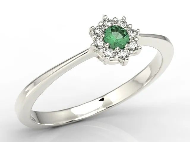Pierścionek z białego złota ze szmaragdem i diamentami JP-49B