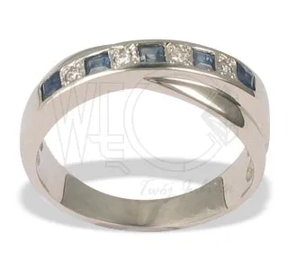 Pierścionek z białego złota z szafirami i diamentami JP-36B