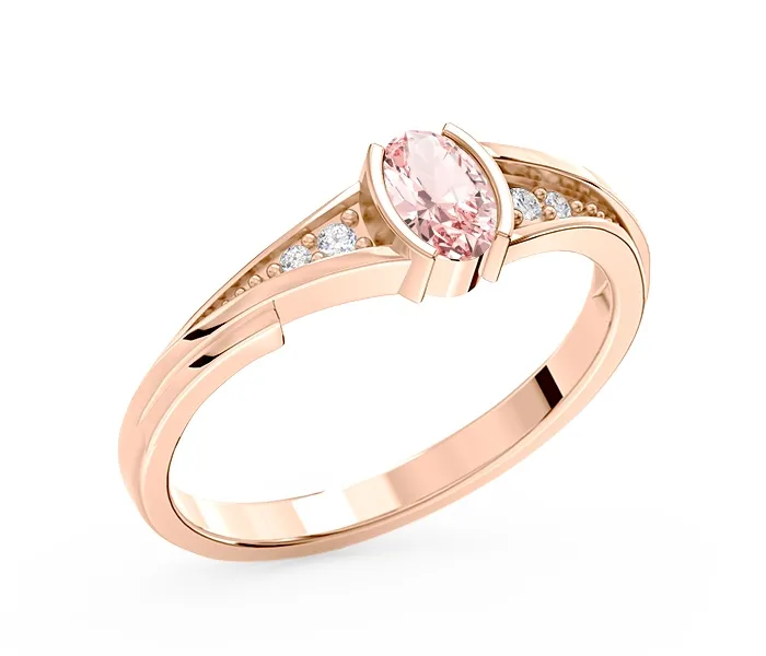 Pierścionek z różowego złota z morganitem i diamentami JP-2705Z