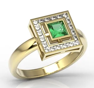 Pierścionek z żółtego złota ze szmaragdem i diamentami LP-68Z