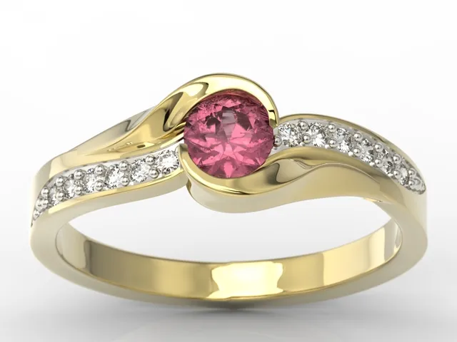 Pierścionek z żółtego złota z rubinem i diamentami model AP-6139Z-R