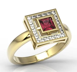 Pierścionek z żółtego złota z rubinem i diamentami LP-68Z
