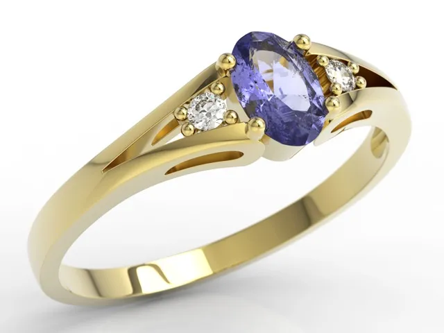 Pierścionek zaręczynowy z żółtego złota AP-39Z z tanzanitem i diamentami 0,03 ct