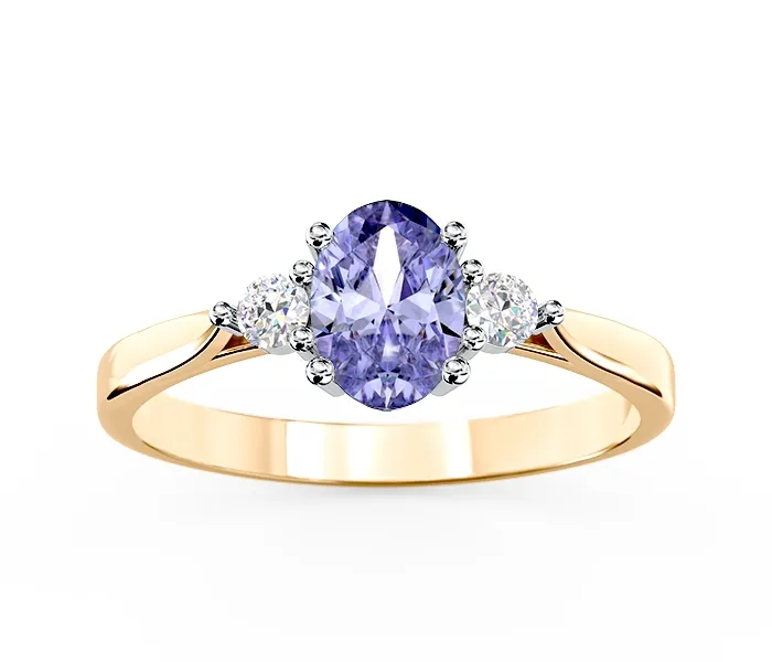 Pierścionek zaręczynowy z żółtego złota JP-22Z z tanzanitem i diamentami 0,04 ct.