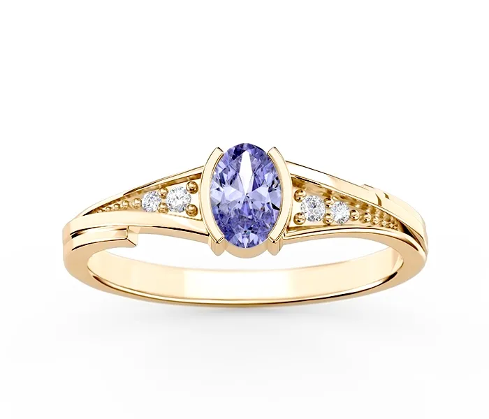 Pierścionek zaręczynowy z żółtego złota z tanzanitem i diamentami JP-2705Z-R