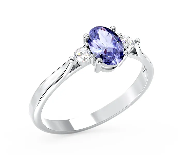 Pierścionek zaręczynowy z białego złota JP-22B z tanzanitem i diamentami 0,04 ct.