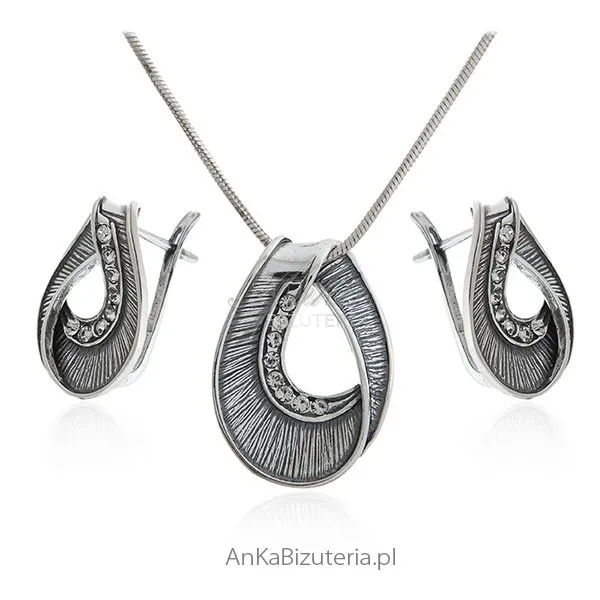 Biżuteria srebrna - komplet oksydowany z cyrkoniami