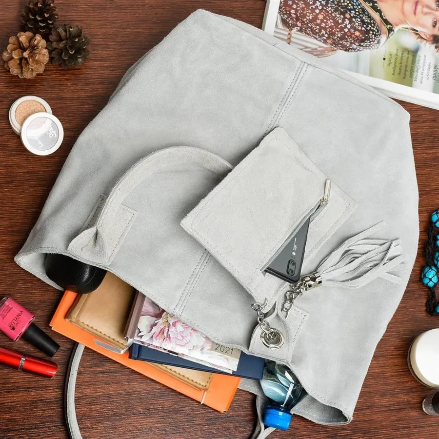 Shopperka skórzana VERA PELLE siwa T49