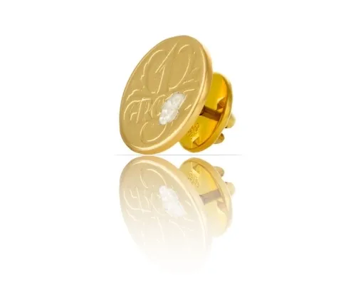 Pozłacany pin w kształcie buteleczki perfum. Wymiary ok 2 cm/ 1 cm.