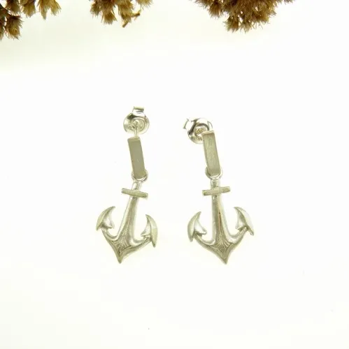 Kotwice małe białe - kolczyki srebrne na ruchomych sztyftach