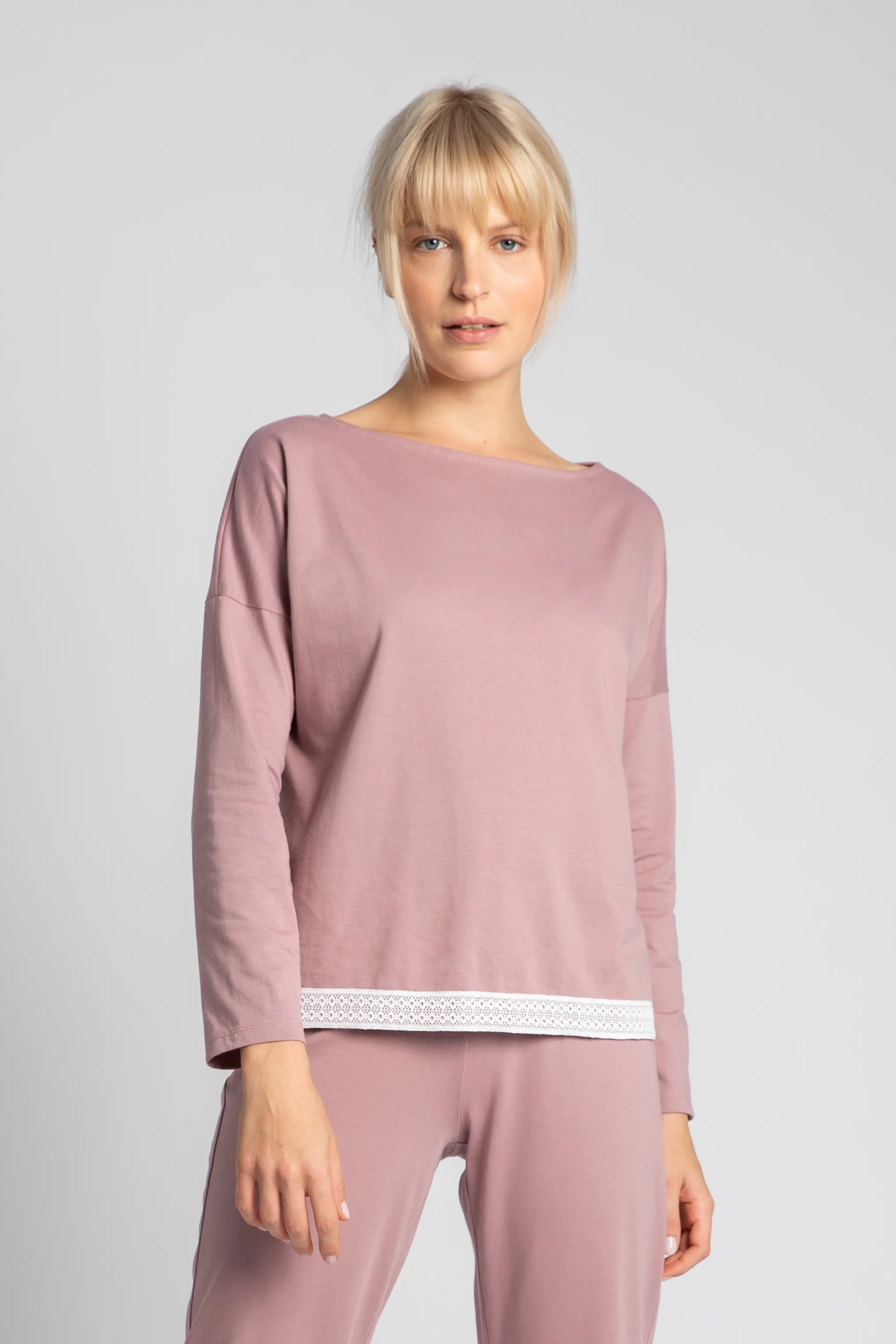 Piżama damska – z miękkiej dzianiny wiskozowej – koszulka z krótkim koronkowym rękawem – do kompletu szorty z ozdobnymi wstawkami ażurowej koronki Skład: 85% wiskoza, 10% poliamid, 5% elastan …