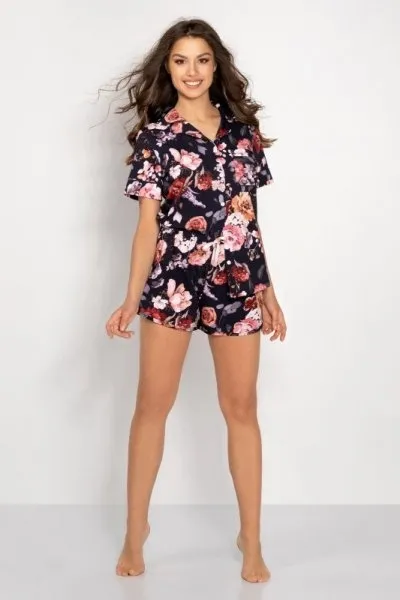 Bawełniana piżama damska- koszulka jednolita z długim rękawem- dekolt w kształcie litery „V”- długie spodnie z efektownym kwiatowym printem- w pasie satynowa kokardka- na biodrach wygodne kieszenie Skład: 100% bawełna…