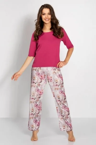 Bawełniana piżama damska – koszulka z rękawem 3/4- przód z nadrukiem w motylki- dekolt okrągły- spodnie typu rybaczki, wzorzyste Skład: 100% bawełna…