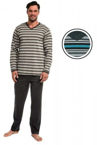 Piżama męska- z wysokiej jakości bawełny- koszulka z długim rękawem w paski- dekolt okrągły- do kompletu spodnie długie, gładkie- wzór jak na zdjęciu 2 Skład: koszulka- 92% bawełna, 8% poliester, spodnie- 100% bawełna…