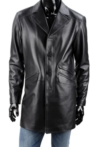 Elegancki płaszcz skórzany męski zapinany na guziki DORJAN