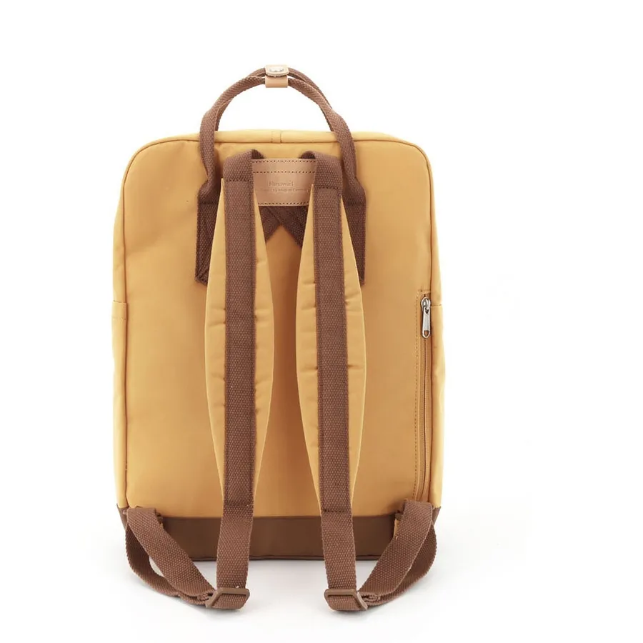 Pomarańczowo-brązowy plecak, idealny na laptop i tablet. Pomieści format A4, wykonany z wodoodpornego materiału. Wyposażony w wiele kieszeni, wygodne szelki i wzmocniony uchwyt. Perfekcyjny do pracy, szkoły i na co dzień.