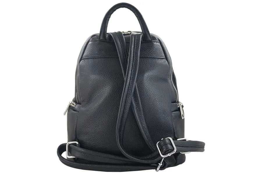Wnętrze plecaka: jednokomorowy plecak damski skórzany wykończony jest podszewką. Komora główna plecaka przedzielona jest zasuwaną kieszenią mieszczącą np. kosmetyki. Dodatkowo wewnątrz znajduje się mniejsza zasuwana kieszonka oraz miejsce na telefon. Plecak skórzany / listonoszka Casual 2w1 posiada złote okucia, suwak otwiera plecak na całej długości, co ułatwia swobodne dostanie się do rzeczy wewnątrz. Długi regulowany pasek (maksymalna dł. 180cm, maksymalna wys. 88cm) umożliwia noszenie na dwa sposoby – jako plecak lub listonoszka. Na zewnątrz znajdują się dwie kieszenie – z tyłu zasuwana, z przodu na zatrzask magnetyczny. Na usztywnionym spodzie znajdują się metalowe stopki chroniące przed otarciem.