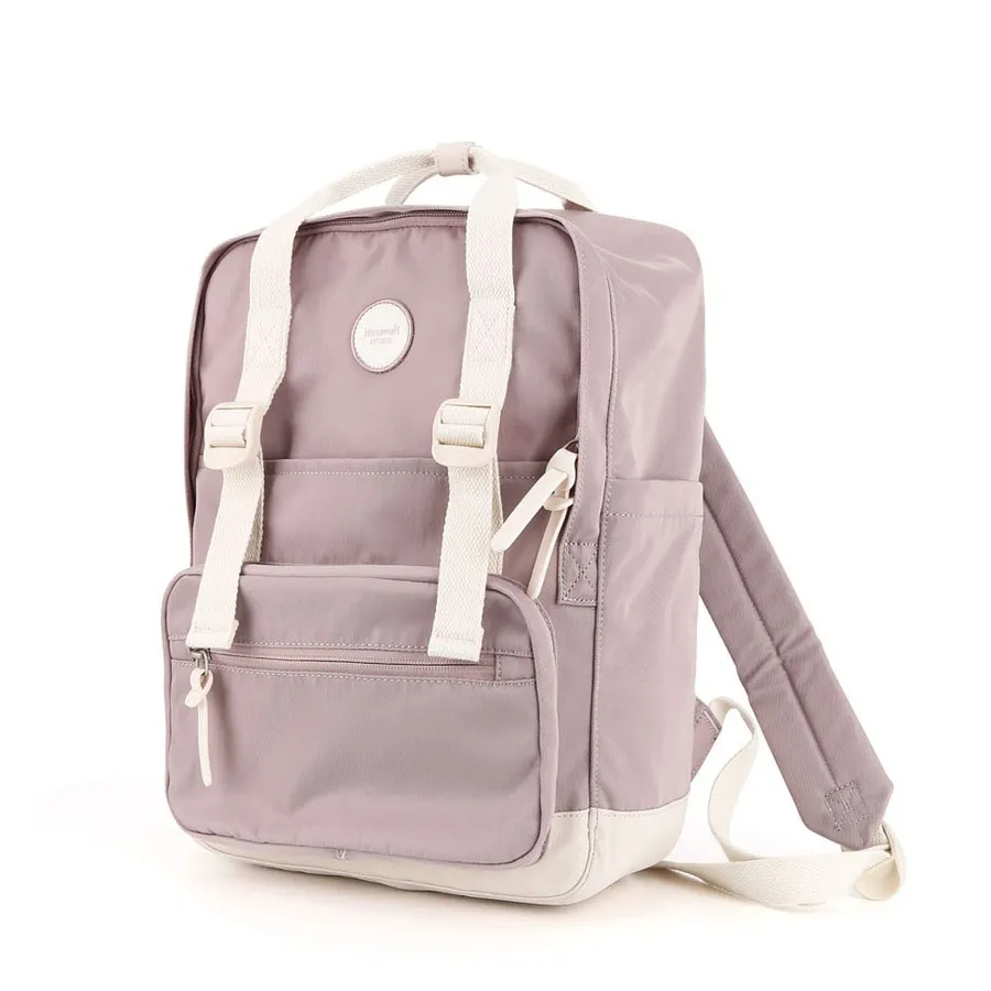 Miejski plecak damski z nylonu w szaro-różowym kolorze. Wyposażony w aż 8 dodatkowych kieszeni i specjalną przegrodę na tablet lub małego laptopa. Zawieszony na regulowanych szelkach i zapinany suwakiem.
