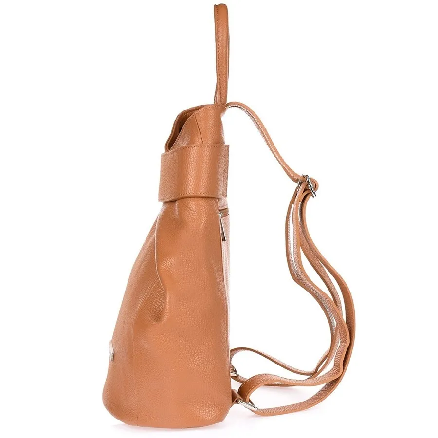 Wyjątkowy skórzany plecak damski – niesamowicie elegancki i praktyczny dodatek!To wygodny i pojemny plecaczek, zmieści się w nim małą butelka z wodą i kalendarz formatu A5, tablet lub książka.Plecak posiada jedną główną komorę, wewnątrz znajdują się dodatkowo trzy kieszonki na drobiazgi – dwie otwarte i jedna zasuwana. Na plecach jeszcze jedna mała kieszeń. Plecak zamykany jest na zamek błyskawiczny oraz szeroki pasek z klipsem.Można nosić go na dwa sposoby: na plecach/na ramieniu lub w dłoni. Regulowane szelki umożliwiają dopasowanie długości do swoich potrzeb, a skórzany uchwyt pozwala nosić plecaczek w dłoni lub zawiesić go na haku.Plecak uszyto w Polsce z wysokiej jakości skóry naturalnej. Wnętrze wykończono solidną, jasną podszewką. Mocne okucia i staranne obszycia gwarantują długowieczność produktu.