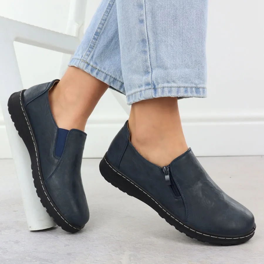 Półbuty damskie na suwak granatowe Potocki 25-90352