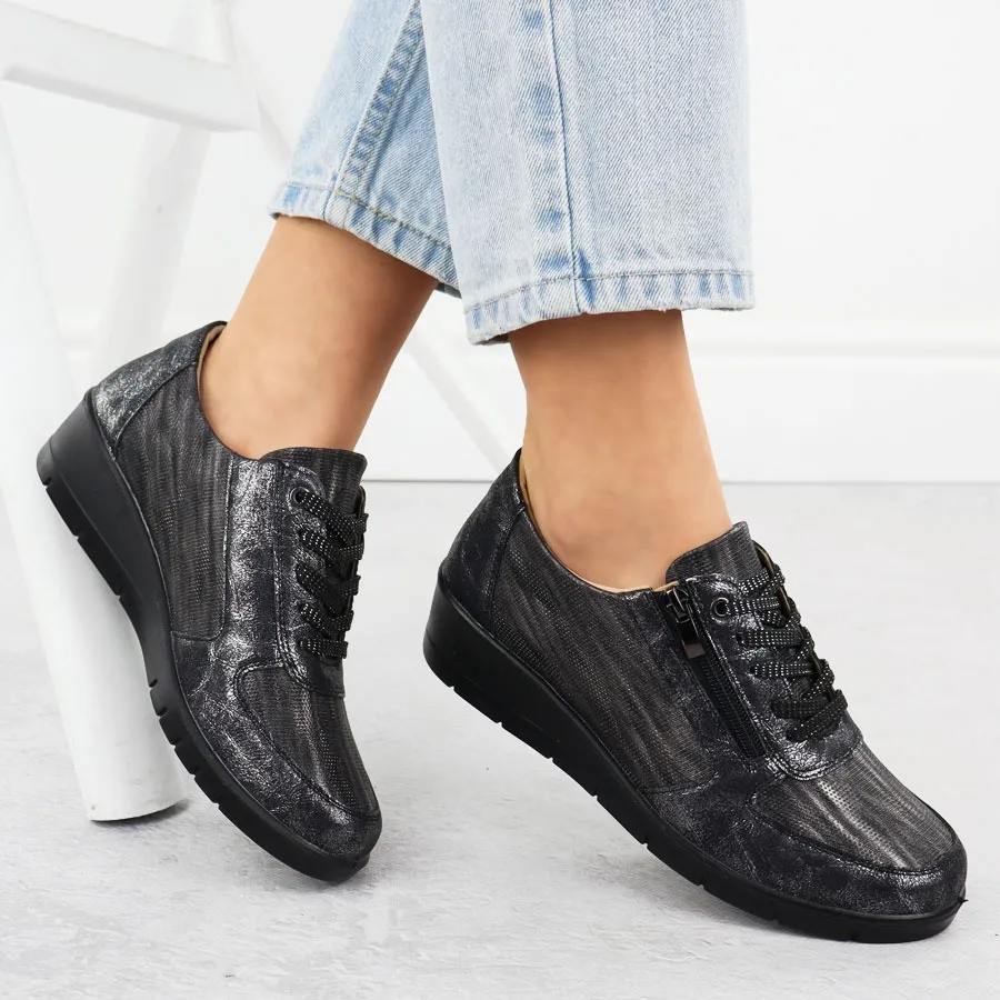 Półbuty sportowe na koturnie czarne Sabatina LH01
