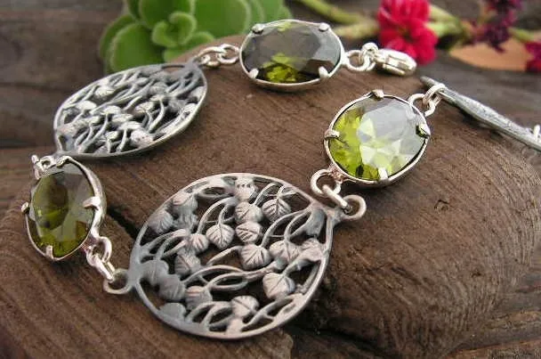 Wytworna srebrna bransoleta, w której oksydowany wzór wkomponowano kocie oczka, które zostały podkreślone poprzez kryształy Swarovskiego umieszczone na krawędzi każdego ogniwa. Biżuteria wykonana została z dbałością o każdy szczegół, co podkreśli urodę każdej kobiety. Wymiar ogniwa: 13 x 22 mm. Kamień 8x13mm. Długość bransoletki to 19cm. Srebro: 925 W naszej ofercie dostepne są także: pierścień, wisior oraz kolczyki do kompletu. Kupując w komplecie oszczędzasz!