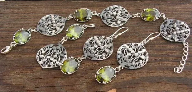 WŁADCA MUCH - srebrny komplet ze szmaragdem