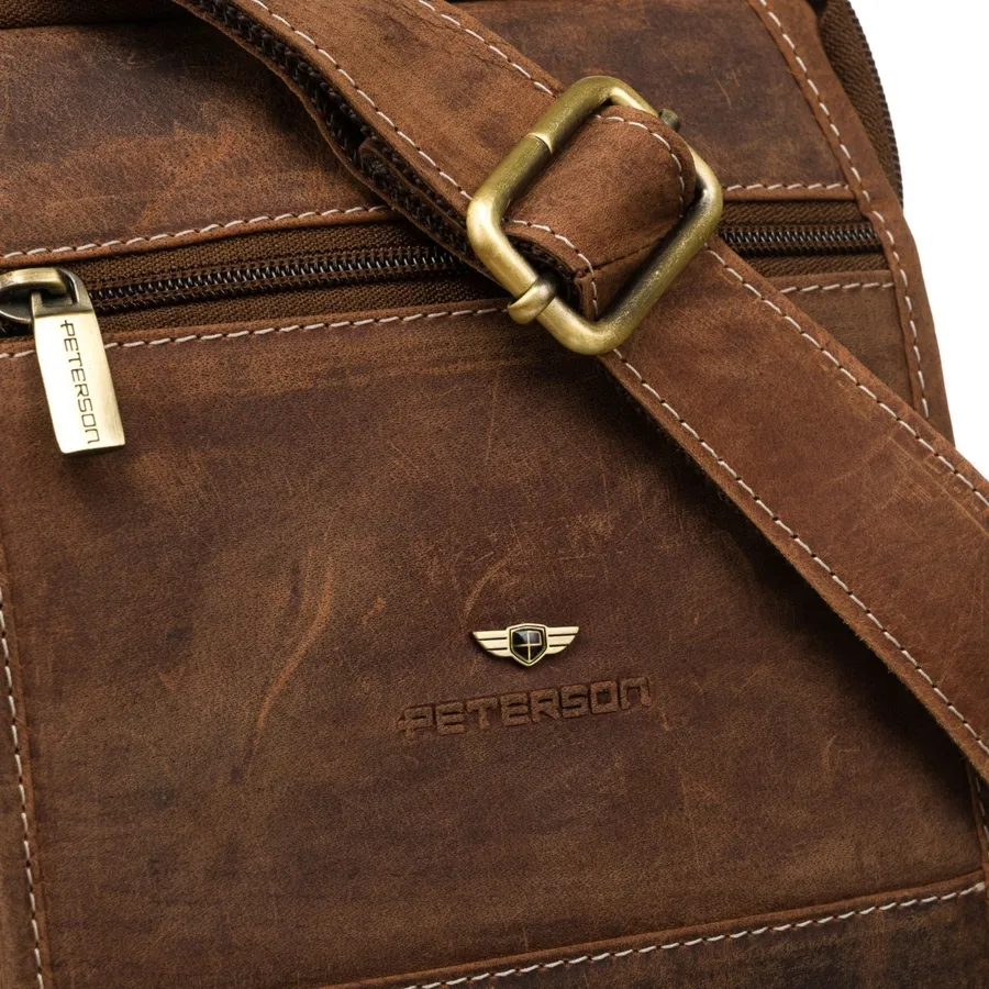 Poręczna listonoszka męska ze skóry naturalnej w brązowym kolorze ze złotymi okuciami PTN 250586-NSH Peterson
