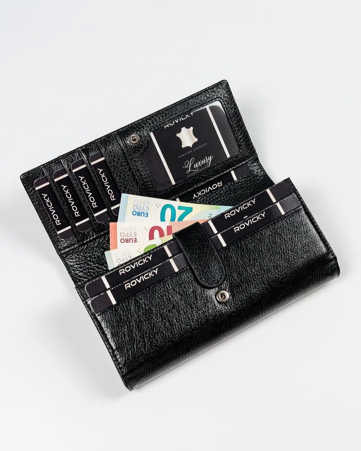 Elegancki, czerwony portfel damski z lakierowanej skóry naturalnej. Wyposażony w zewnętrzną portmonetkę na bigiel. Wewnątrz wiele zakładek na karty, dedykowane miejsce na fotografie oraz duże kieszenie na dokumenty mieszczące dowód rejestracyjny.