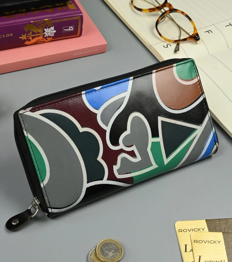 Model T-05-DB to portfel damski w stylu vintage, na którego froncie umieszczono kwiatowe tłoczenia. Dzięki wewnętrznej warstwie RFID, portfel skutecznie zapobiega kradzieżom poufnych danych i personaliów z kart kredytowych poprzez przesył fal radiowych. Czuj się bezpiecznie razem z Paolo Peruzzi. Na wnętrze portfela składa się podwójna komora na bilon (zapinana na suwak), dwie przegrody na banknoty, sześć kieszonek na karty kredytowe oraz półtransparentna kieszeń na zdjęcia lub legitymacje służbową. Co więcej, ten model posiada tył odpinany na patkę, gdzie umieszczono dodatkową transparentną komorę, dwa schowki po długości oraz czternaście przegródek na karty kredytowe. To wyjątkowy model z dużą ilością miejsca do przechowywania, musisz go mieć! Charakterystyka Producent: Paolo PeruzziModel: T-05-DBMateriał: skóra naturalna postarzanaKolor: granatowyIlość przegród na karty: 20Przegroda na banknoty: 2Kieszeń na bilon: tak, podwójna zapinana na suwakIlość schowków: 4Orientacja: poziomaPrzegrody przeźroczyste: 2 Wymiary Wysokość: 10 cmSzerokość: 18 cmGrubość: 4 cm M.