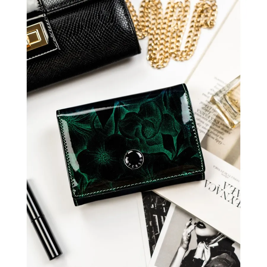 Portfel wykonany z połączenia skóry naturalnej i ekologicznej w złotym kolorze. Wyposażony w system RFID. Kompaktowy rozmiar, który zmieści wszystko, co potrzebne. Portfel zapakowany w firmowe pudełko. Zamykany zatrzaskiem. Mieści dowód rejestracyjny.