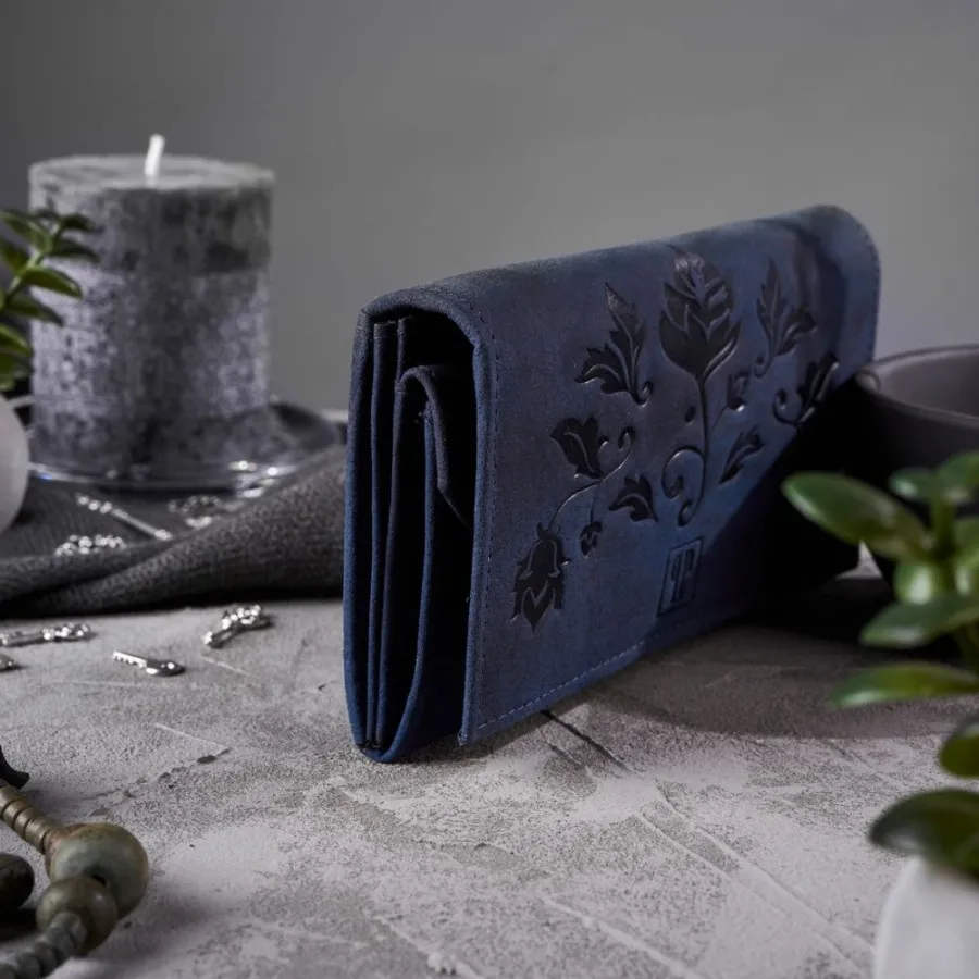 Portfel damski w kwiaty, średniej wielkości. Wykonany ze skóry naturalnej postarzanej z tłoczeniami na froncie. Wewnątrz 2 przegrody na banknoty, 6 schowków w tym kieszonka na suwak. Dodatkowo 7 przegród na karty kredytowe i transparentna kieszeń, wewnątrz wszywana membrana RFID. Charakterystyka Model: T-44-RDProducent: Paolo PeruzziMateriał: skóra naturalna postarzana Kolor: czerwony Ilość przegród na karty: 7 + 1 transparentna Przegroda na banknoty: 2Ilość schowków: 6Kieszeń na bilon: takOrientacja: poziomaOchrona RFID: tak Wymiary Wysokość: 10 cm Szerokość: 16 cmGłębokość: 3 cm