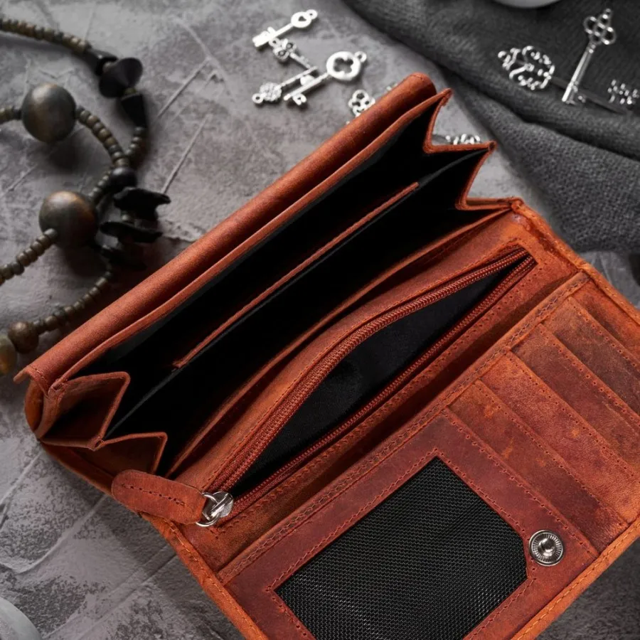 Portfel damski w kwiaty, średniej wielkości. Wykonany ze skóry naturalnej postarzanej z tłoczeniami na froncie. Wewnątrz 2 przegrody na banknoty, 6 schowków w tym kieszonka na suwak. Dodatkowo 7 przegród na karty kredytowe i transparentna kieszeń, wewnątrz wszywana membrana RFID. Charakterystyka Model: T-44-CHRProducent: Paolo PeruzziMateriał: skóra naturalna postarzana Kolor: różowyIlość przegród na karty: 7 + 1 transparentna Przegroda na banknoty: 2Ilość schowków: 6Kieszeń na bilon: takOrientacja: poziomaOchrona RFID: tak Wymiary Wysokość: 10 cm Szerokość: 16 cmGłębokość: 3 cm