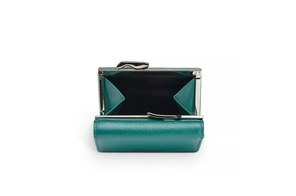 Elegancki czerwony portfel – 8 miejsc na karty, 2 przegrody na banknoty, kieszeń na bilon i ochrona RFID.
