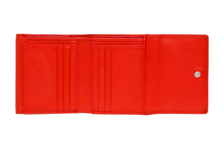 Skórzany portfel damski z 6 miejscami na karty, kieszenią na bilon na zatrzask i ochroną RFID – idealny na co dzień i do małych torebek.