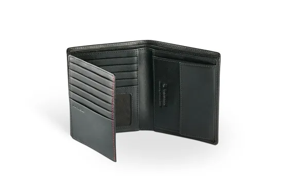 Czarny, poziomy portfel damski wykonany z miękkiej skóry naturalnej.