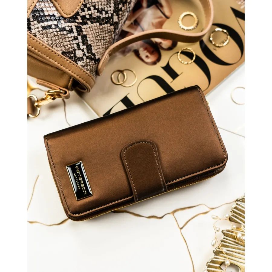 Brązowy portfel damski ze skóry naturalnej i ekologicznej z systemem RFID PTN PS1431-HNL Peterson