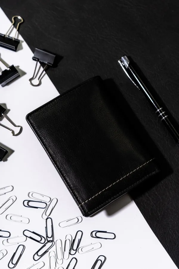 Portfel męski z RFID w orientacji poziomej. Wykonany ze skóry naturalnej zabezpieczonej podszewką. Wewnątrz praktyczne zakładki na karty i dokumenty, zasuwana kieszonka oraz sekcje na gotówkę.