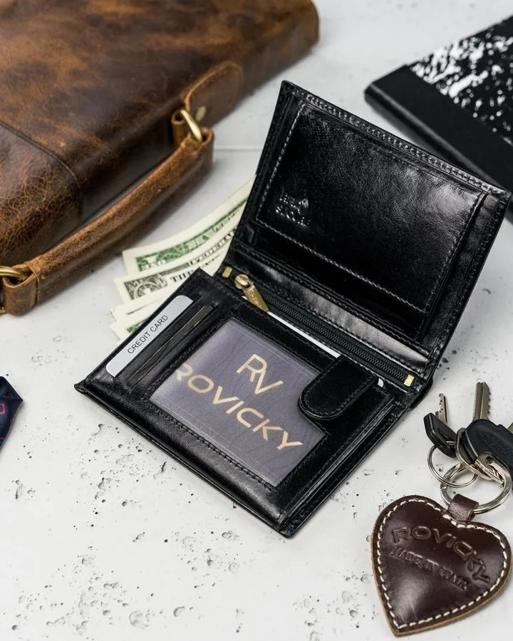 Skórzany portfel męski czarny Rovicky N62-RVT BLACK