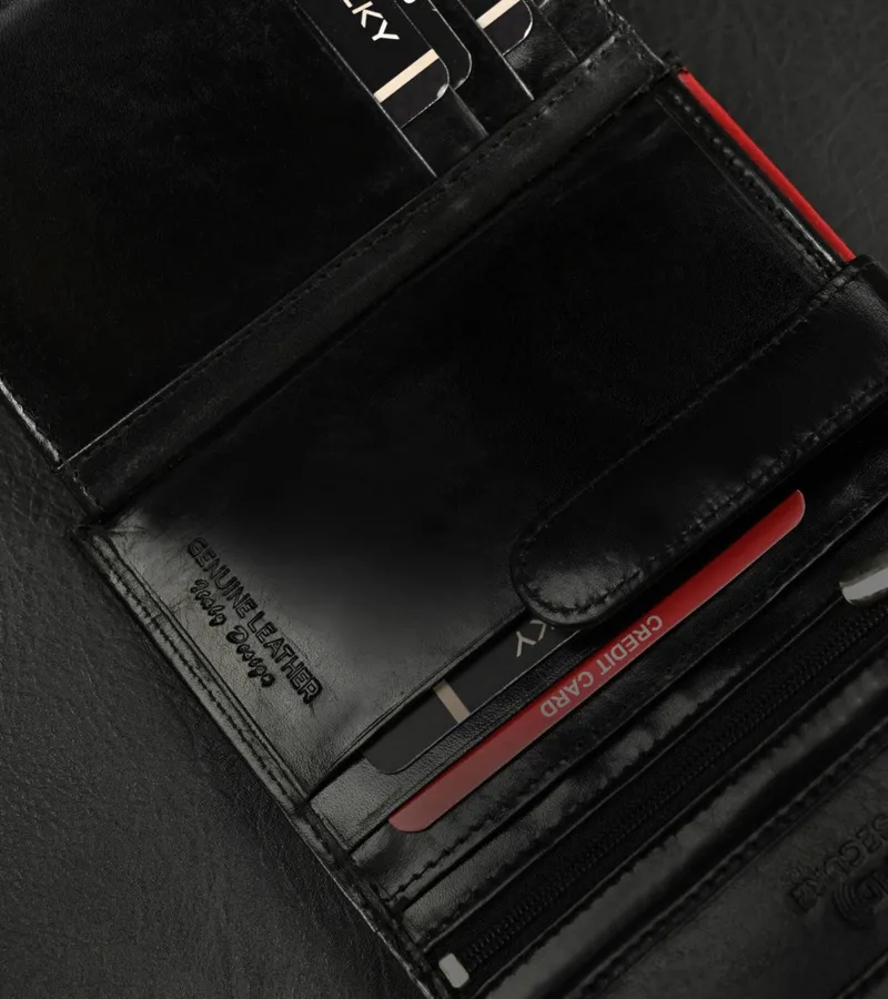 Portfel czarny RFID Ronaldo skórzany N104L-VT BLACK-RED