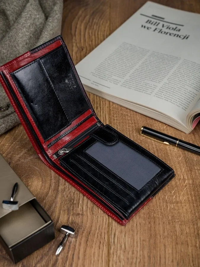 Elegancki męski portfel o klasycznym wyglądzie, który pomieści wszystkie niezbędne dokumenty i pieniądze.