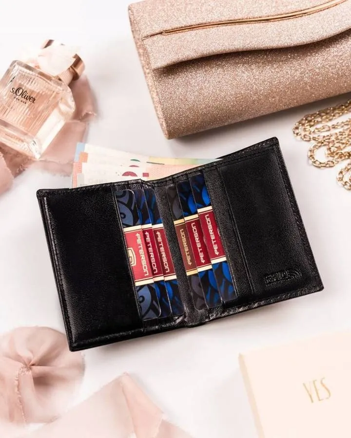 Pionowy portfel męski zamykany zatrzaskiem. Wyposażony w zakładkę na kartę umieszczoną na rewersie. Wewnątrz wygodne kieszonki na karty oraz dokumenty. W centralnej części portfela zasuwany schowek. Akcesorium z zabezpieczeniem RFID Protect.