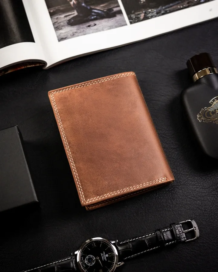 Portfel odszyty z trwałej nubukowej skóry naturalnej. Model o klasycznej stylistyce. Portfel w orientacji poziomej. Posiada rozbudowane wnętrze – zmieścisz w nim pokaźne ilości kart oraz gotówki. Wyposażony w technologię RFID BLOCKING SYSTEM.