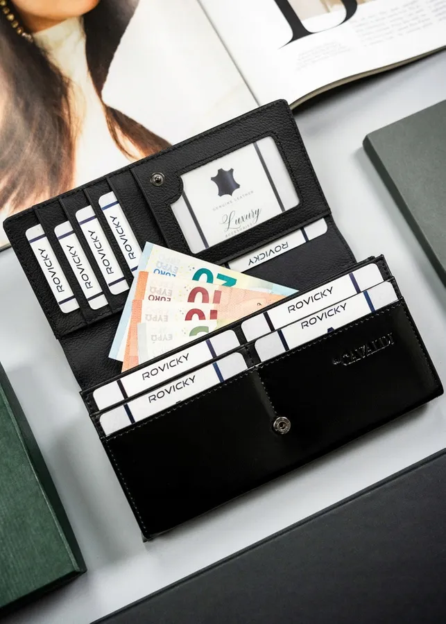 Odszyty bardzo trwale z doskonałej jakości, przyjemnej w dotyku skóry naturalnej nubukowej. Portfel o klasycznej stylistyce. Model w orientacji poziomej zapinany na zatrzask. Portfel mieści dowód rejestracyjny. Wyposażony w technologię RFID.